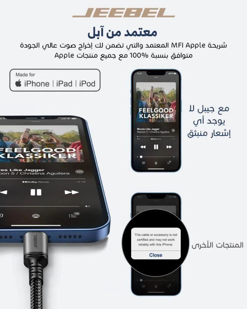 هل ترغب في توصيل جهازك الصوتي بسهولة وجودة عالية؟سلك ايفون اصلي هو الحل المثالي لتحويل الأجهزة التي تدعم AUX 3.5mm إلى أجهزة تدعم USB-C مثل الهواتف الذكية أو السماعات مصمم بتقنية قماشية متينة لضمان استخدام طويل مع جودة صوت عالية.مواصفات سلك ايفون اصليالتصنيف: شواحن الطول: 1.2 مترالمواد: تغليف قماشي مقاوم للتلفالمدخل: AUX 3.5mm (ذكر)المخرج: USB-Cاللون: أسود مع تفاصيل معدنيةالملاءمة: مثالي للأجهزة الصوتية مثل سماعات الرأس، الهواتف، والسياراتالمميزاتسلك ايفون اصلي يوفر لك تجربة صوتية عالية الجودة دون أي تداخل أو ضوضاء.تغليف قماشي مقاوم للتلف يحمي الكابل من التمزق والتلف ويعزز عمره الافتراضي.يدعم جميع الأجهزة التي تحتوي على منفذ USB-C مع جهاز يحتوي على AUX 3.5mm.كابل بطول 1.2 متر يوفر لك مرونة في الاستخدام وتحريك جهازك بكل سهولة.اتصال سريع وآمن بين الأجهزة المختلفة.لماذا تختار سلك ابل الاصلي؟يقدم لك جودة صوت واضحة ونقية.تغليف قماشي يحافظ على الكابل طويل الأمد.يمكن استخدامه مع سماعات الرأس، السيارات، الأجهزة الصوتية، والمزيد.يقدم قيمة عالية مقابل السعر ويتيح لك تجربة عالية الجودة.لا تفوت فرصة الحصول علي سلك ابل الاصلي للحصول على اتصال صوتي عالي الجودة اطلبه الآن وتمتع بأفضل تجربة صوتية على الإطلاق.لمزيد من المنتجات:كيبل تايب سي الى تايب سي